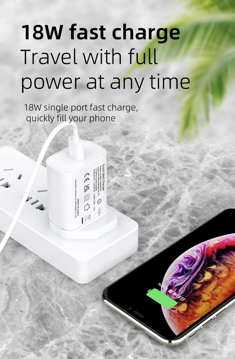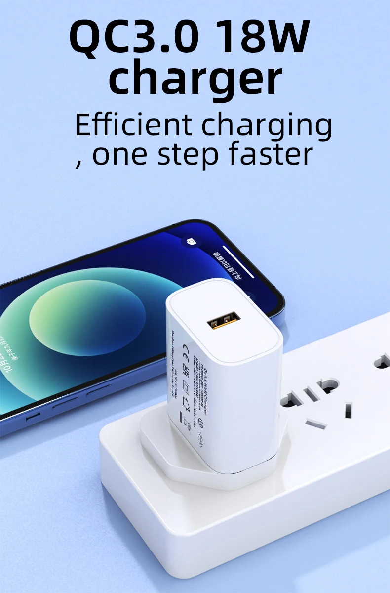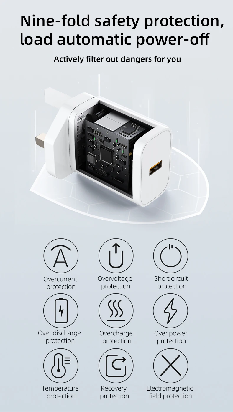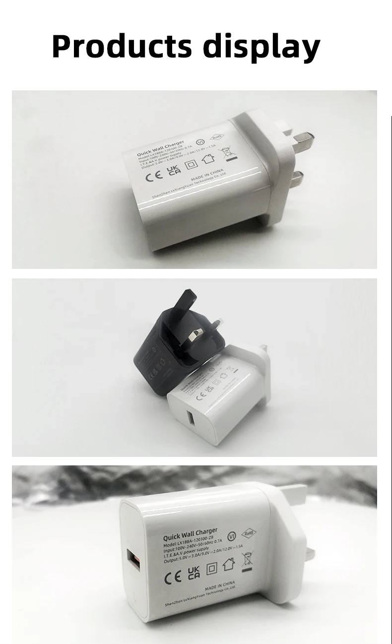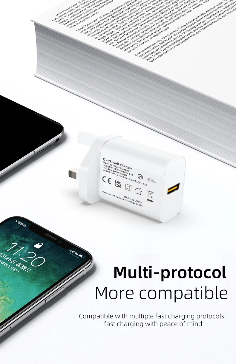 Quick Charge QC 3.0 18W USB UK Plug Universal Mobile Phone Charger Wall Fast Charging Adapter with UKCA CE
